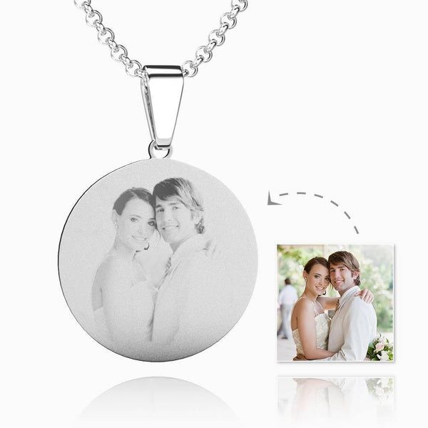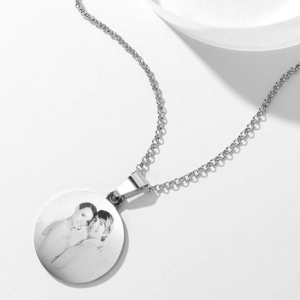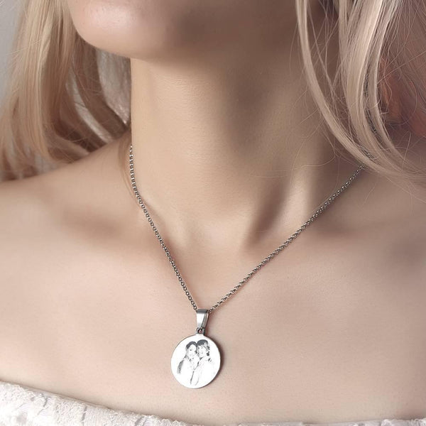 Women's Round Photo Engraved Necklace Stainless Steel, Engraved Necklace Bar Necklace Name Necklace Black Friday Gifts Cyber Monday Gifts MyNameNecklace