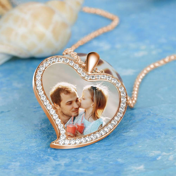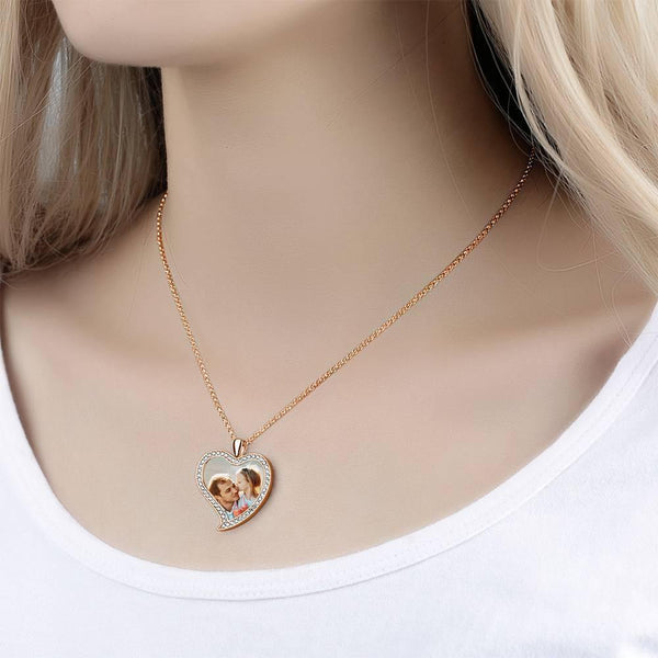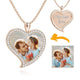 Women's Personalized Rhinestone Crystal Love Heart Shape Photo Engraved Necklace Rose Gold Plated - Colorful