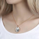 Women's Personalized Rhinestone Crystal Oval Shape Photo Engraved Necklace Rose Gold Plated - Sketch